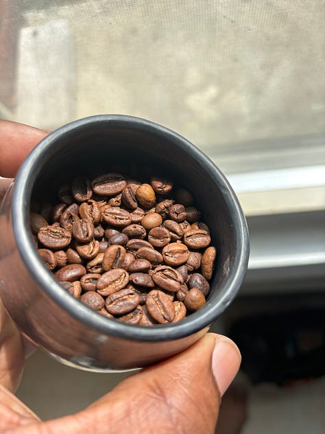 The next morning I brewed a sample of the coffee at home and was surprised by how regular it tasted. Regular for a natural Wush Wush I should say. I could taste some of the defects but honestly they did not make for an unpleasant cup. A day or two later at work we tasted four versions of the coffee.