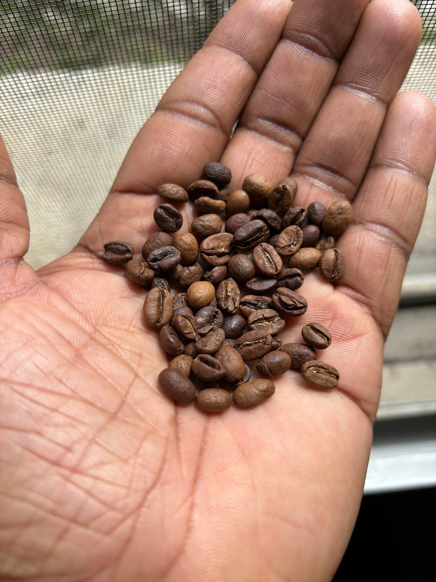 I finished the roast and as my coworkers and I were analyzing the color we noticed a decent amount of defects. Far too many for a grade 1 coffee. I know I can clean up the roast a bit, but most of the defects were not roasting defects. There were empty shells, floaters, just a bizarre mix of things you don’t typically see in a grade 1 lot. I heard that Ethiopian crops took a hit it the last couple of years and quality has not been the same, maybe that is what we are experiencing with this coffee? Anyways, here is what it looks like roasted. So much going on!